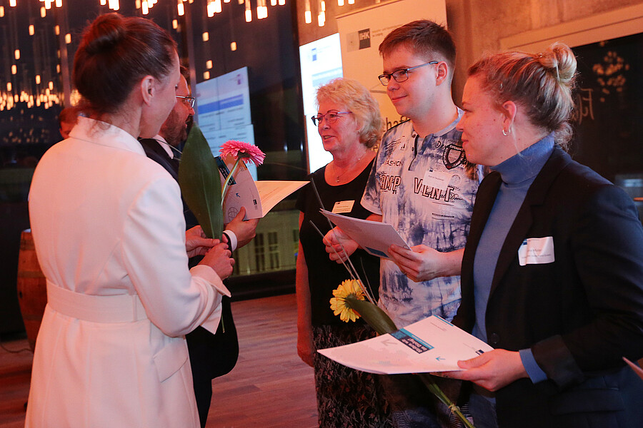 Ebenfalls mit Bestnoten glänzten zwei weitere Auszubildende des Berufsbildungswerks Leipzig aus dem Fachbereich Drucktechnik. Von über 4.000 Absolvent*innen hat ein Auszubildender bei den IHK-Abschlussprüfungen der Prüfungsperiode Winter 2022/ 2023 und Sommer 2023 ein Spitzenergebnis erzielt. Er ist der beste Medientechnologe Druck im gesamten Kammerbezirk Leipzig und wurde am 19.10.2023 von der Industrie- und Handelskammer zu Leipzig als bester Jungfacharbeiter geehrt. Der Auszubildende ist auch noch Landesbester des Bundeslandes Sachsen geworden.